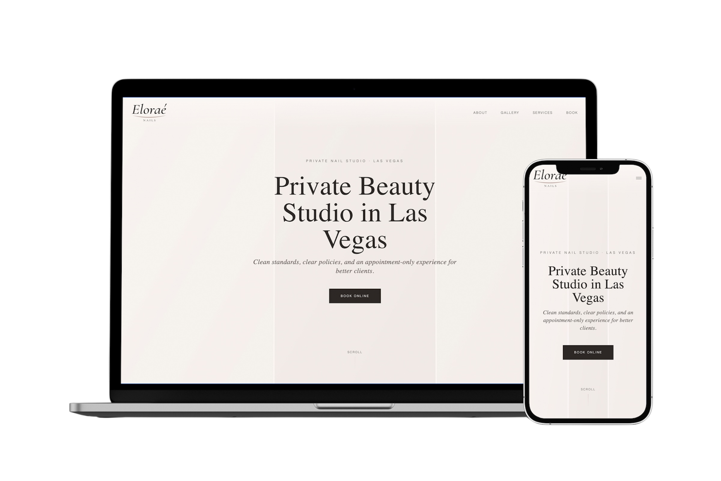 Eloraé Nails is an appointment-only private studio — not a walk-in salon. The experience is calm, clean, and deliberate. Their Wix site didn't reflect any of that. It looked like every other nail salon site, which was the wrong signal for a studio positioning itself around quality and exclusivity.